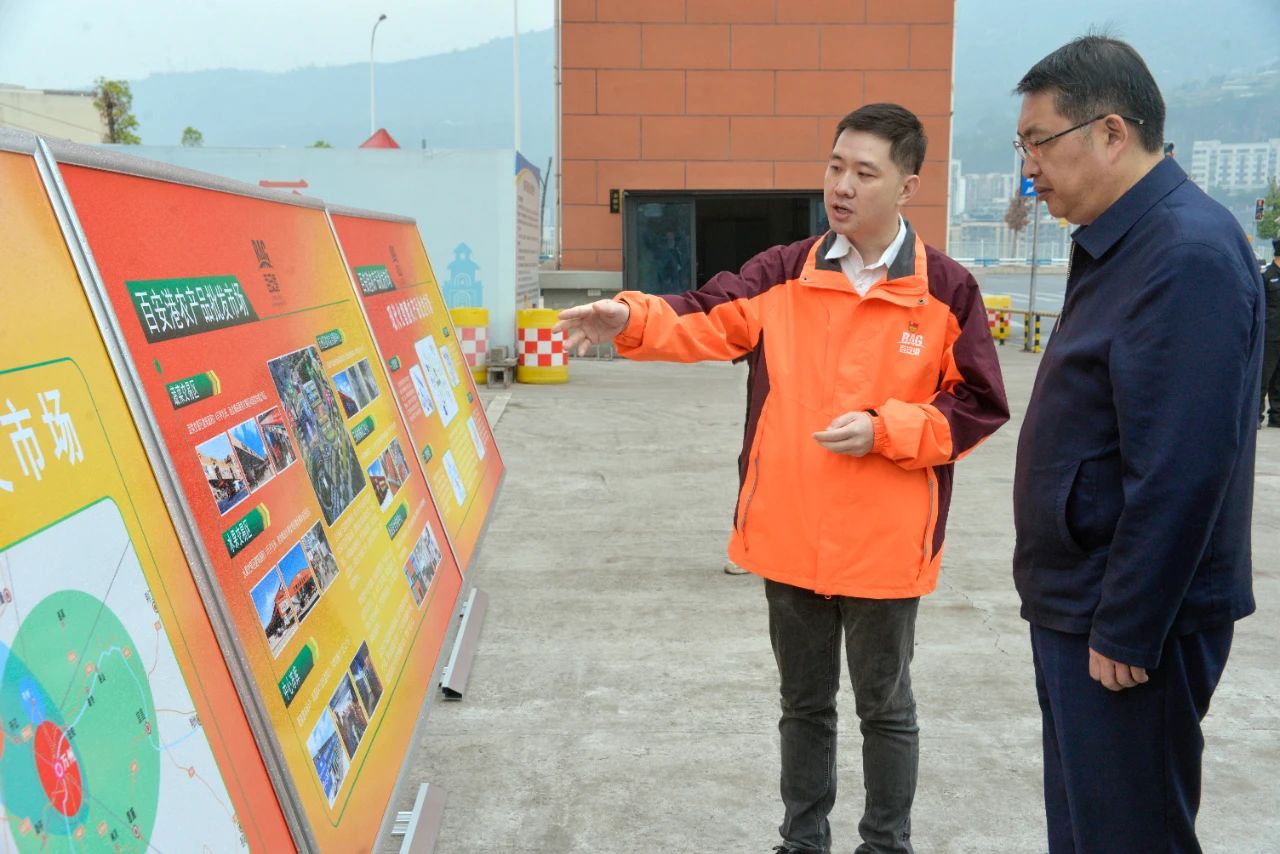 10月31日,重庆市商务委党组书记、主任章勇武一行莅临百安港农产品批发市场调研,万州区副区长刘小泉等陪同调研。